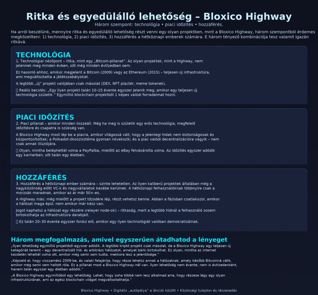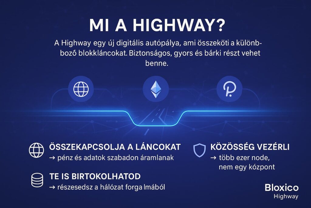 🚀 Mi az a Highway? Gondolj rá úgy, mint egy digitális autópályára, ami összeköti a különböző blokkláncokat. Ezen az “autópályán” a pénz és az adatok gyorsan, biztonságosan és szabadon mozognak a világ minden tájáról. És ami a legfontosabb: most először bárki részt vehet benne, nem csak a nagy cégek.