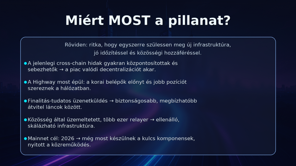 ⏳ Miért most? A jelenlegi blokklánc-átjárók veszélyesek és túl központosítottak A piac keresi a valódi megoldást A Highway épp most épül – és még a legelején csatlakozhatsz Ez olyan, mintha ott lettél volna a Bitcoin indulásakor – de most sokkal nagyobb eséllyel érted, hogy miről van szó.